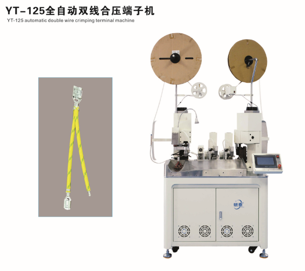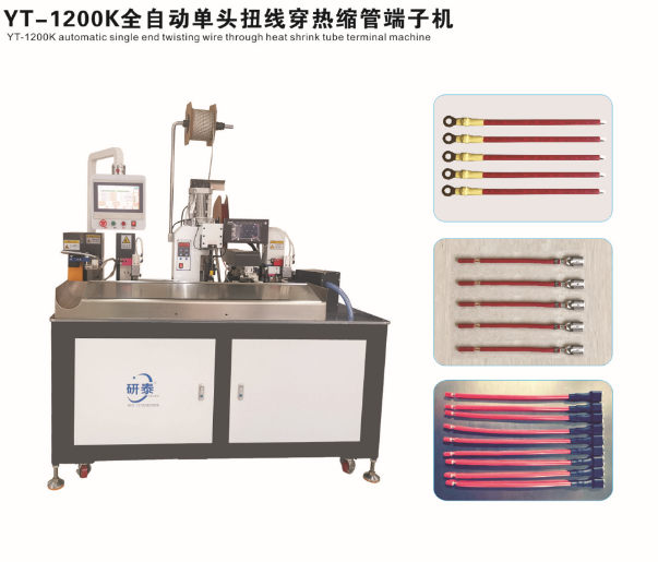 全自動雙頭穿護套端子機、全自動雙頭穿熱縮管端子機、全自動銅帶壓接端子機、全自動雙頭端子機、全自動排線端子機、全自動沾錫打端機、全自動打端插殼機、新能源全自動雙頭穿熱縮管散粒端子機、新能源全自動雙壓單穿激光打號碼管端子機、新能源大平方穿號碼管端子機。